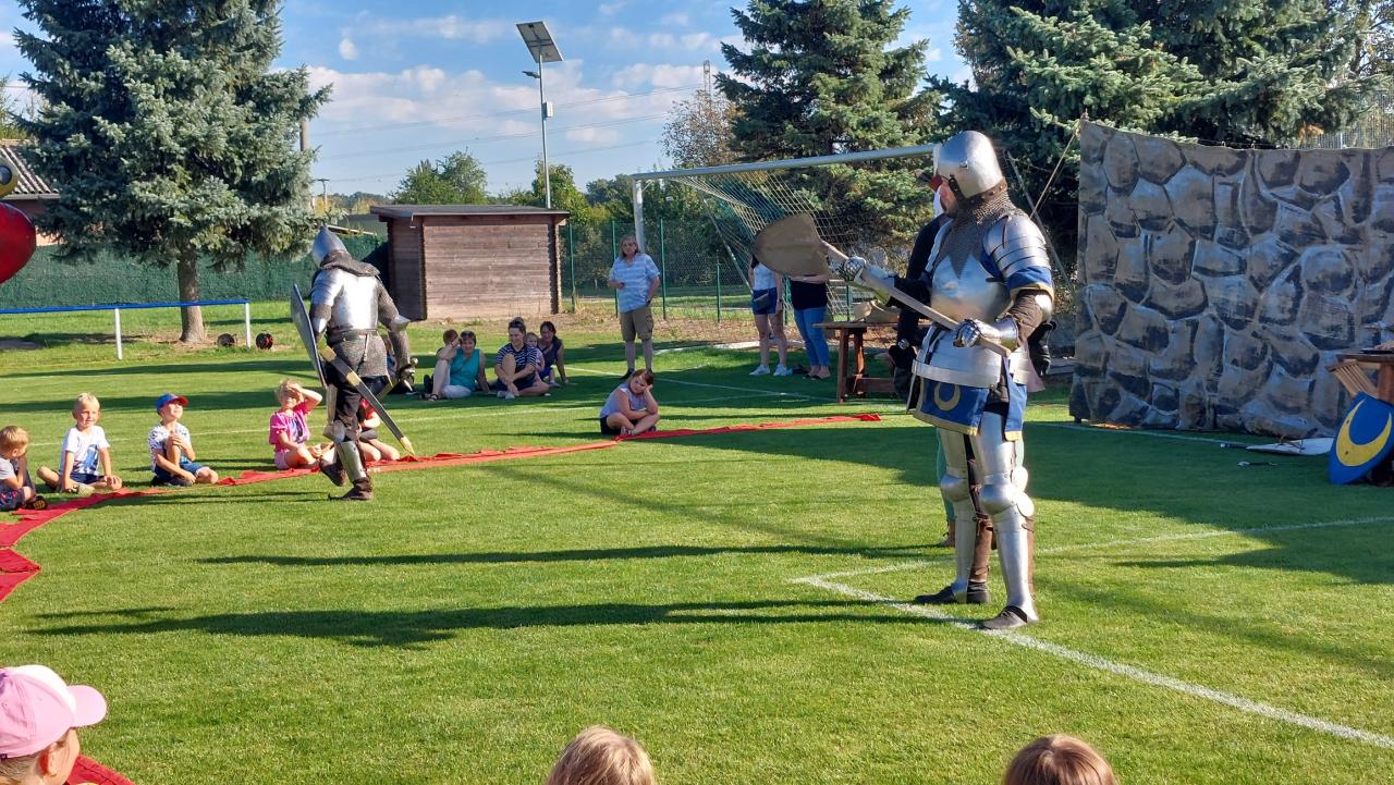 Loučení s létem bylo tentokráte ve znamení rytířských soubojů a lukostřelby. Děti se mohly na souboje nejen podívat, ale také si bojové umění vyzkoušet. Lákavá byla také lukostřelba na terč.