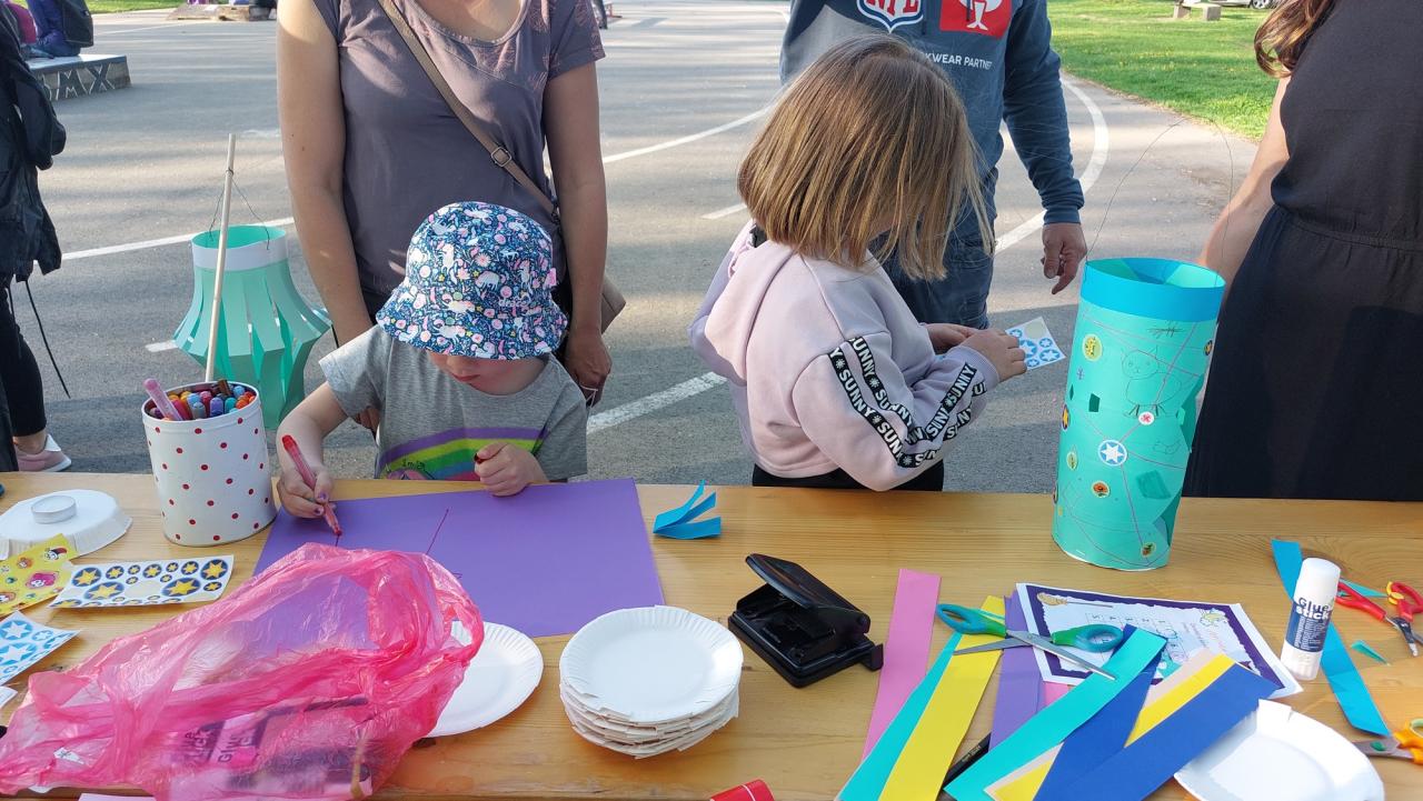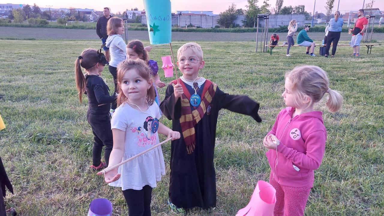 V rámci podvečerního programu na Sokolském hřišti si mohly děti zasoutěžit na "čarodějnické stezce" a také vyrobit svůj vlastní lampion.