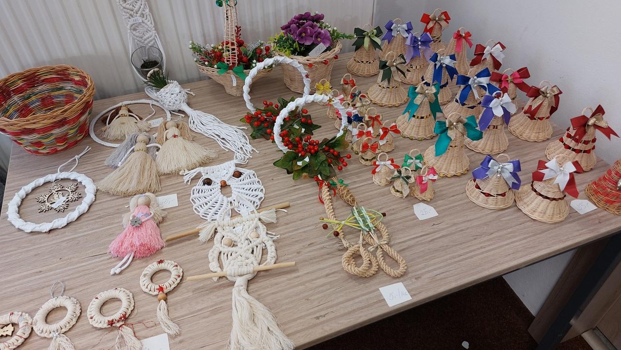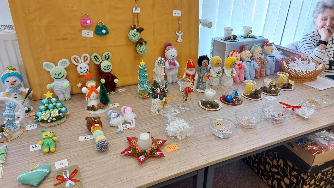 Výrobky šikovných rukou s vánoční tématikou byly k vidění na sále obecního úřadu.